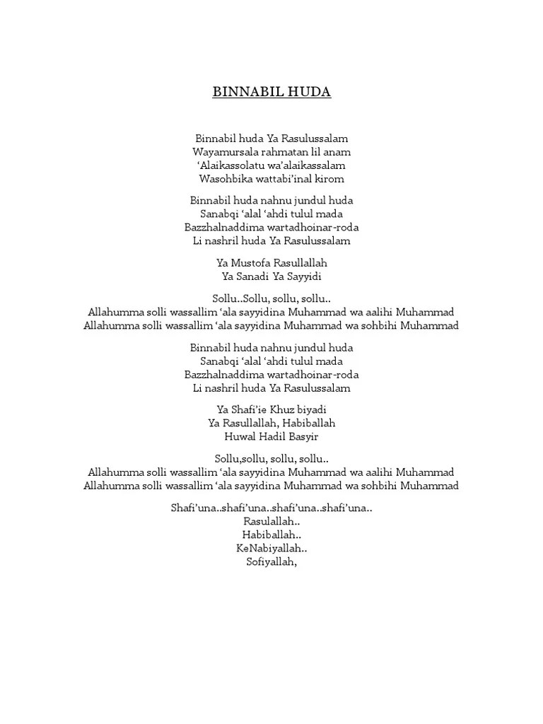 Binnabil huda ya rasulussalam wayamursala rahmatan lil anam 'alaikassolatu wa'alaikassalam wasohbika wattabi'inal kirom dengan nabi yang . Lyrics for binnabil huda (akustik) by unic. بالنبى الهدى يا رسول السلام ويا مرسلا رحمة للأنام عليك الصلاة عليك السلام وصحبك والتابعين. Binnabil huda ya rasulussalam wayamursala rahmatan lil anam 'alaikassolatu 'alaikassalam Binnabil huda ya rasulussalam wayamursala rahmatan lil anam 'alaikassholatu wa'alaikassalam